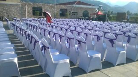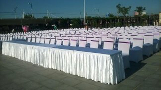 我们公司不只是有各类样式的桌子、椅子类的物料,另有各种跨度的欧式篷房、铁马护栏、帐篷、隔离带等物料可供您使用。